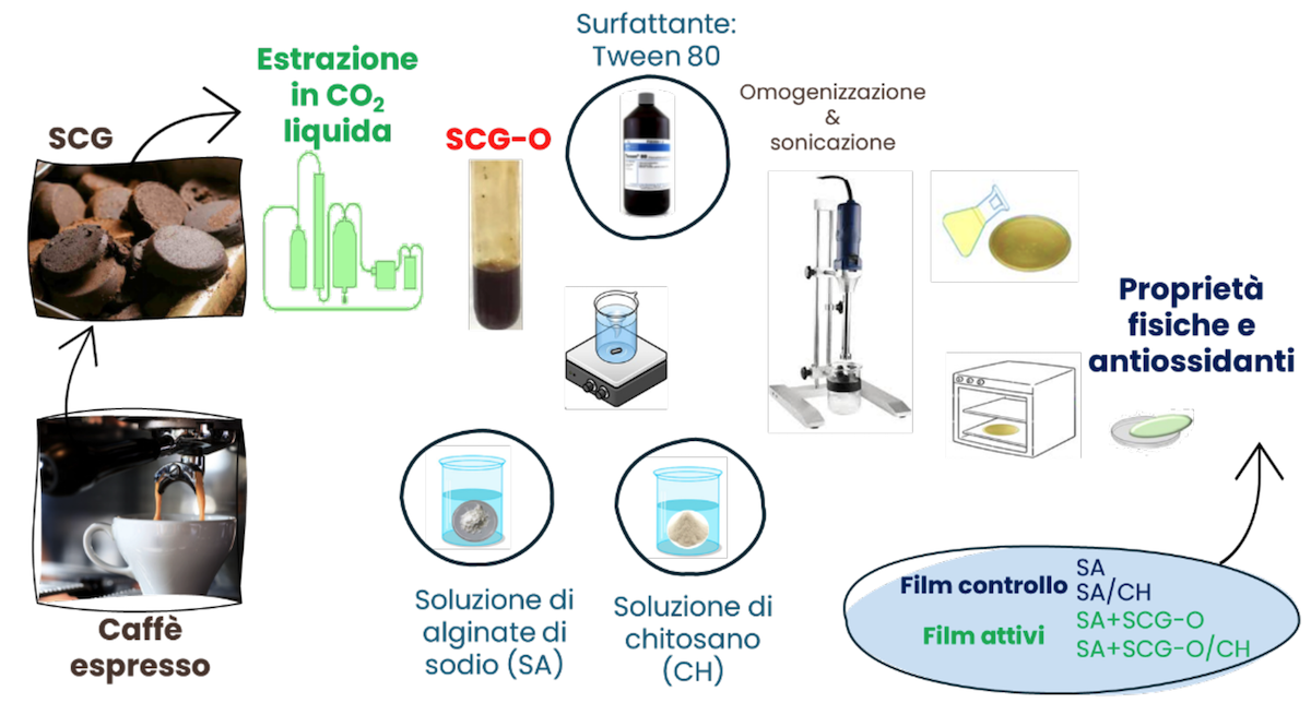 L’integrazione di SCG-O nella struttura di film a base di biopolimeri ha consentito la realizzazione di materiali attivi a rilascio controllato. I film così ottenuti hanno mostrato un’efficace capacità di incapsulamento, un'incrementata stabilità termica, una maggiore opacità e un ridotto assorbimento di vapore acqueo, senza alterazioni significative delle proprietà di permeabilità. L’insieme di tali prestazioni funzionali rende i film particolarmente adatti alla conservazione di alimenti ad elevato contenuto lipidico, contribuendo alla mitigazione dei fenomeni ossidativi e alla preservazione della qualità nutrizionale.